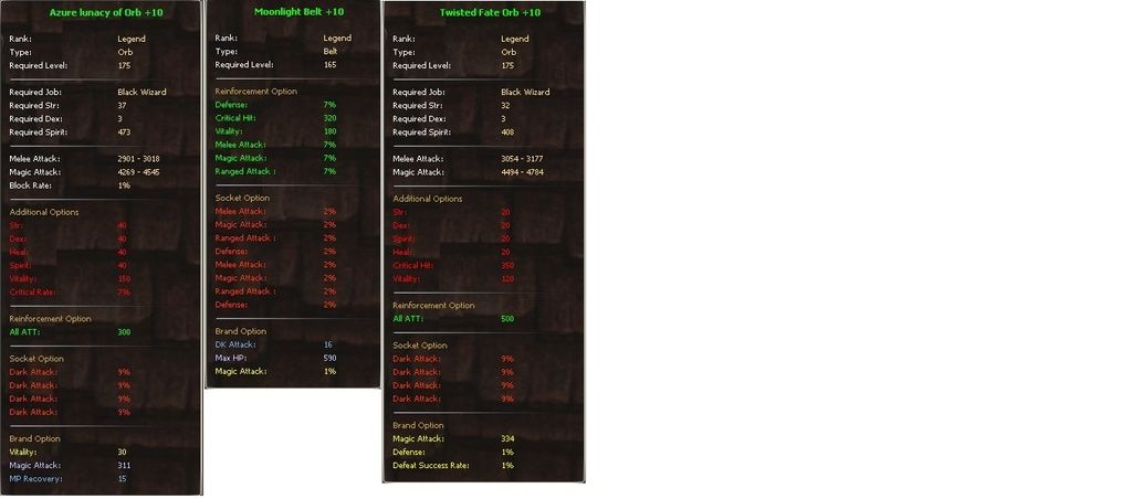 WTS +9 BW 170 SET and MC2 with +10 LUNACY ORB